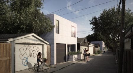 So when tasked by R-Hauz with designing a series of prefabricated laneway houses for Toronto – 108-square-metre homes to be developed en masse – Superkül eyed local concerns about housing and sustainable development and vowed to create designs that were affordable, energy efficient and beautiful. And, true to their promise, these compact homes are designed to the international Passivhaus standards, featuring faceted ceilings to create dimension, skylights to infuse sunshine, bike parking, green roofs and sheltered outdoor space annexed from the main backyard. Who needs the main street when you’ve got just enough.