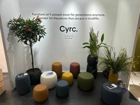 With an organic design, Cyrc presents an array of recycled PLA poufs and planters from the HOUF collection, championing their sustainable ethos. Headquartered in Montreal, Cyrc is known for its circular design practice, which offers waste-free alternatives to traditional homeware production thanks to their traceable recyclable materials and a 3D printing process.