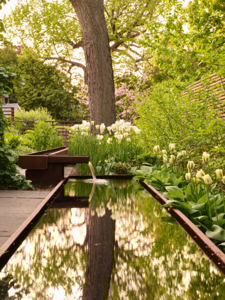 With soothing sounds from the tiered water feature, this Whitby, Ontario, garden bubbles with life. Architect Jennifer Turner has mastered the art of balancing natural and built environments in her 30-plus years of landscape design for luxurious gardens and homes. “I’m an avid gardener and wanted to create a modern, structured garden with an appropriate sense of scale to elongate the space and make it feel larger than it did previously,” she says. The vision – a unique cottage alternative for a retired couple located just an hour outside the city.